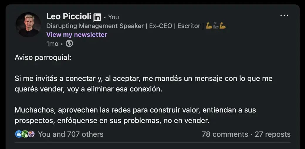 Los Protagonistas me dijeron que tenían que desarrollar sus redes de contacto para, obvio, vender más, conseguir otros empleos, ser más valiosos. Sin hacer spam.
