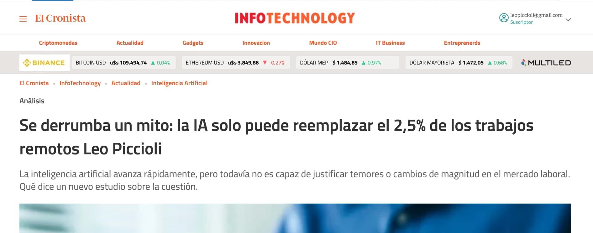 Como si fuera poco, esta semana publiqué dos notas disruptivas…
