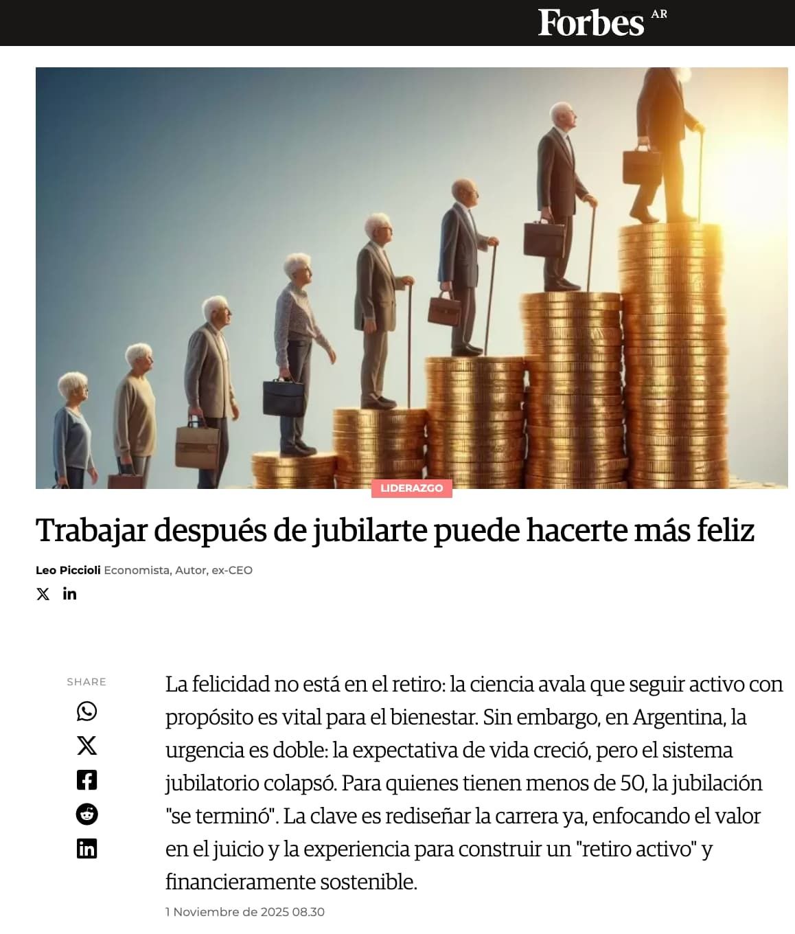 Y, en otro orden de cosas, mucha investigación sobre el trabajo después de jubilarse… Como una necesidad financiera (de la que hablo en mi nuevo libro, OBVIO) pero también por cuestiones de felicidad:
