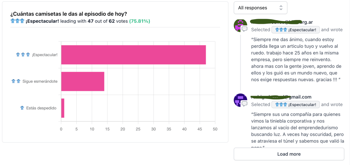 ¡Gracias por responder siempre! Extracto de la encuesta anterior (¡Sí, los leemos todos!):