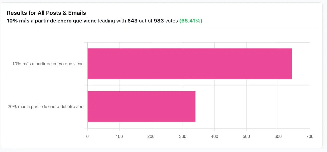 Para entender qué fuerza domina en esa decisión, lancé una encuesta simple con dos opciones: ¿Preferís ganar 10% más a partir de enero que viene o 20% más a partir de enero del otro año? Supusimos un contexto sin inflación, puramente matemático.