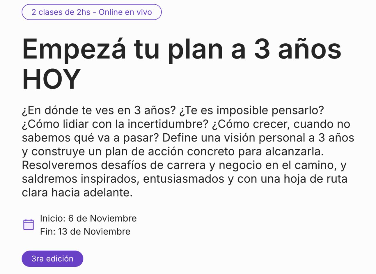 Dos sesiones para diseñar un objetivo a tres años y empezar a ejecutarlo.