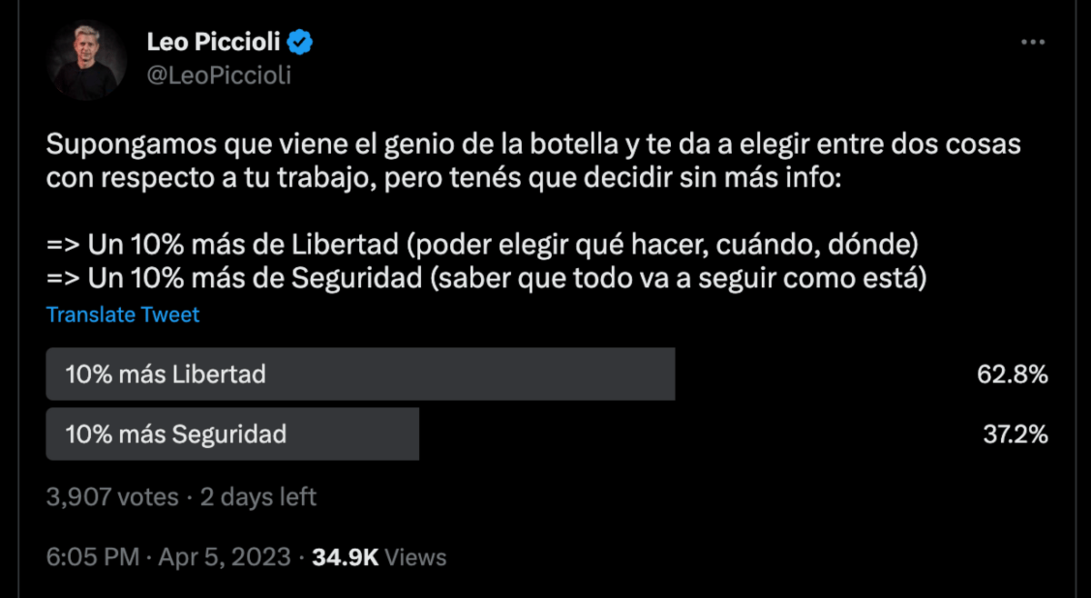 Estás arrastrando los pies, tratando de llegar al trabajo (que puede ser una oficina, un campo, un avión o donde sea). Pensás en todo lo que darías por tener un poco más de Libertad.