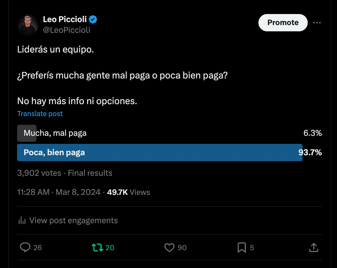 Por eso preferimos menos gente mejor paga.